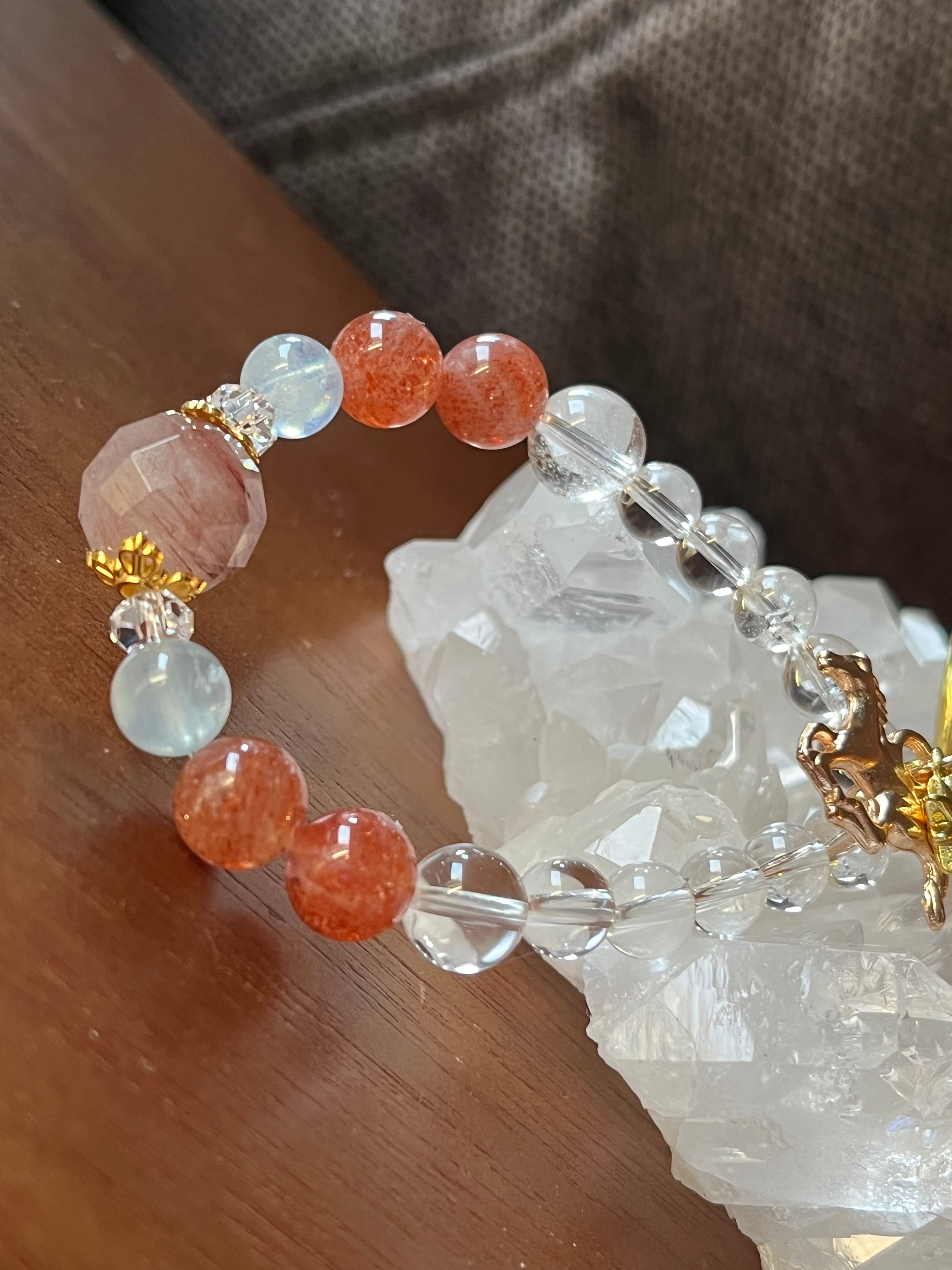 火のパワー天然石サンストーン、アクアマリン、水晶。