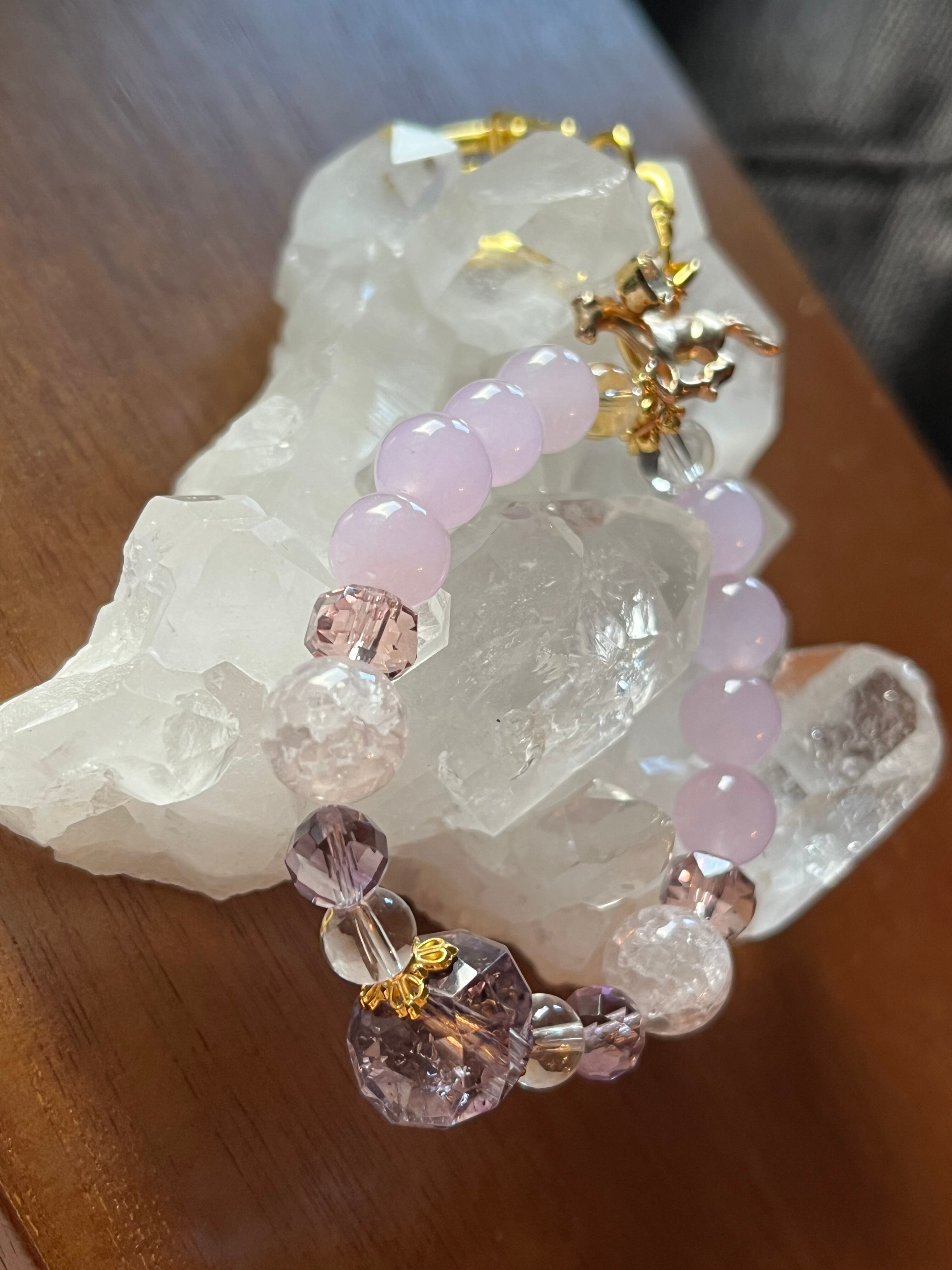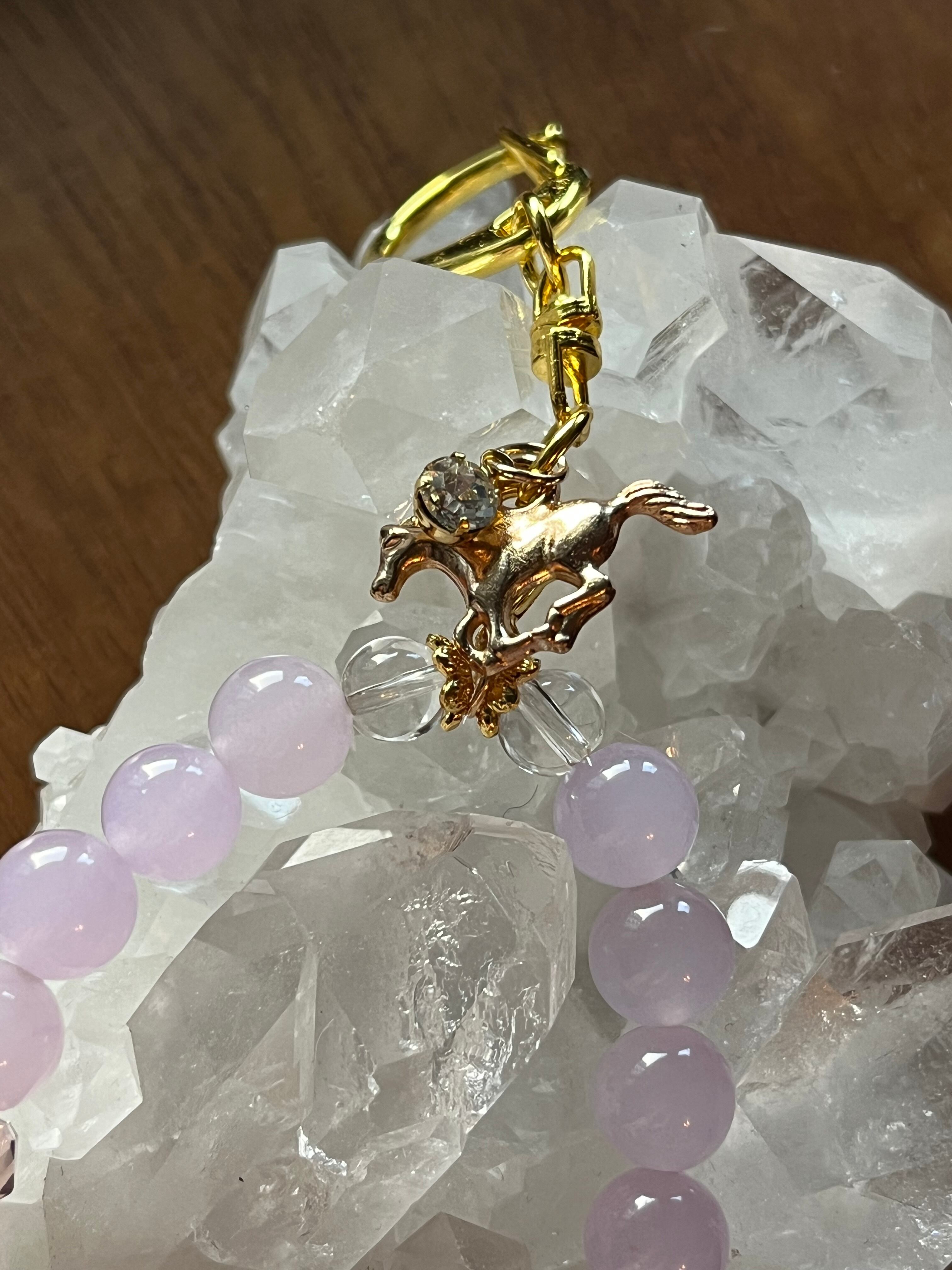 馬の干支モチーフの今年のお守り 火のパワー天然石、 ヒマラヤ水晶、紫水晶 災い避け、御守り、 パワーアップ、心願成就