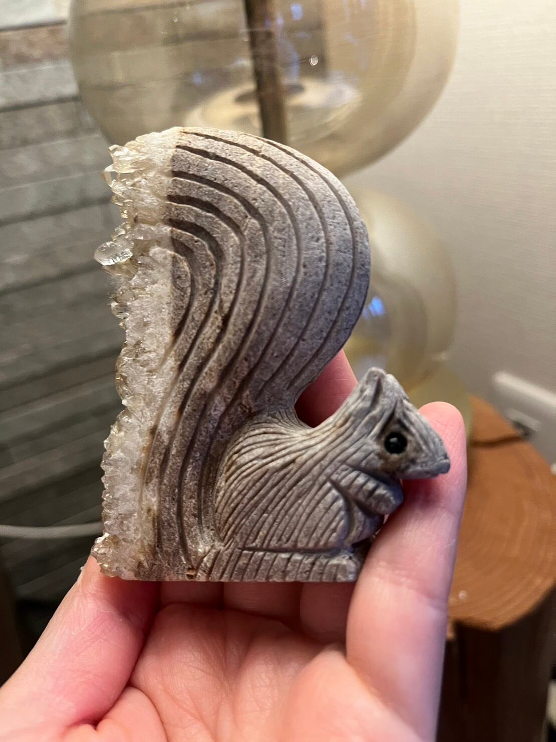 手のひらサイズのかわいいリスのしっぽは天然水晶クラスター!