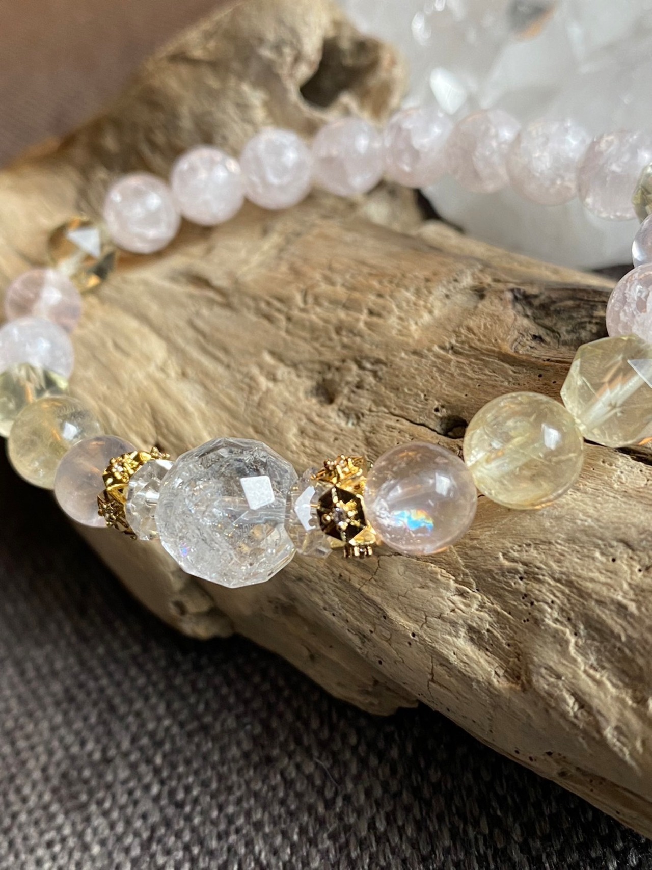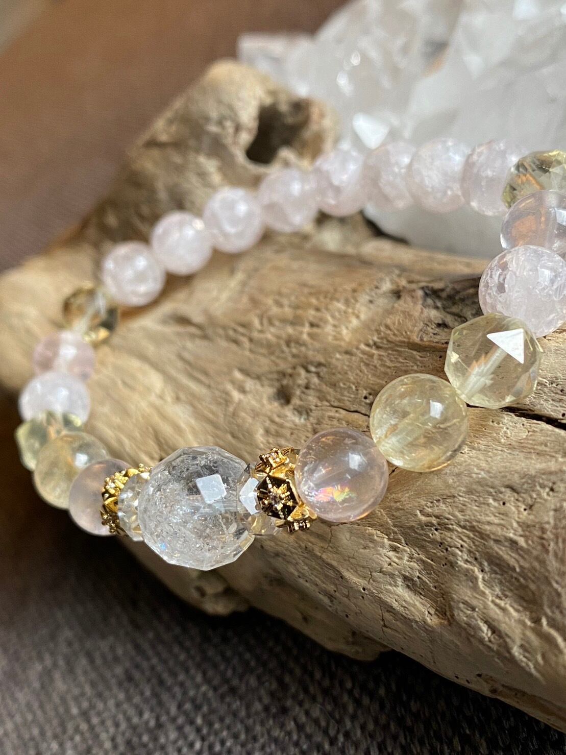 レインボーのクォーツは「幸福に導く」といわれていて、心に強く願うと虹色の数だけ願いが叶う、という素晴らしい言い伝えがあるのです。