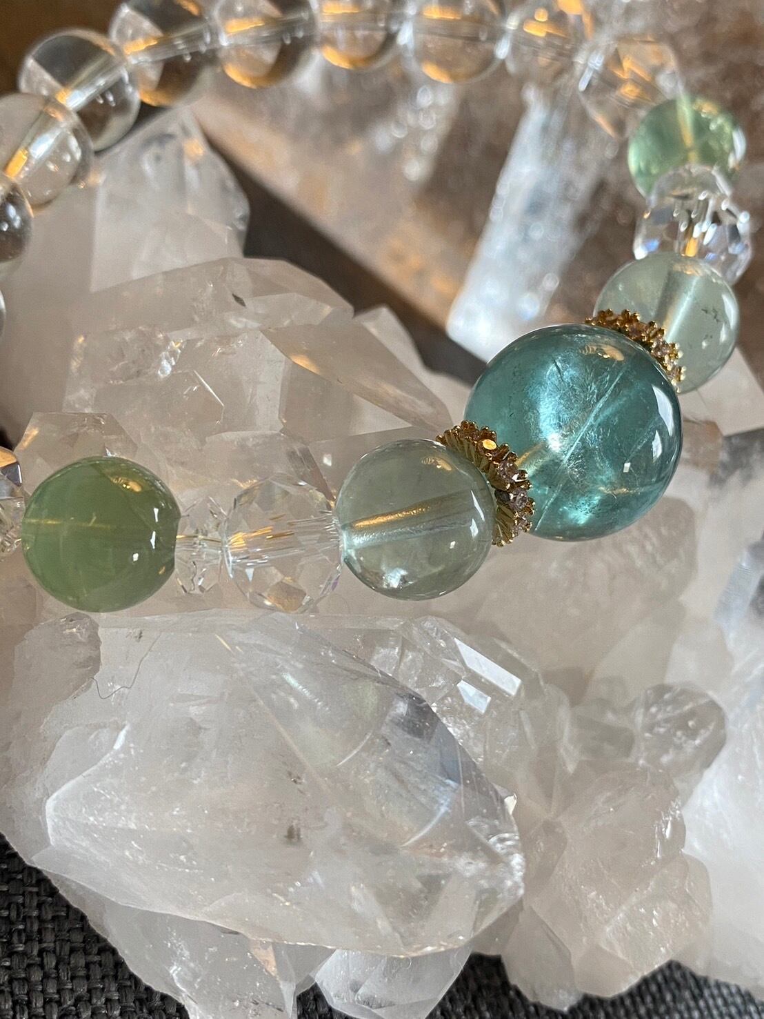 約1.5cm超えの大きなブルーグリーンの深い美しさを際立たせるデザインブレス。